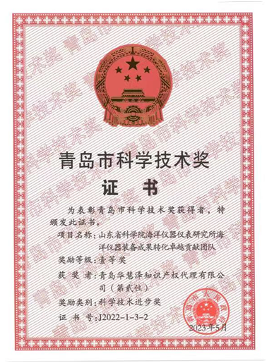 近日,青岛市政府公布了《关于2022年度青岛市科学技术奖励的决定》(青政发〔2023〕8号)。青岛华慧泽知识产权代理有限公司与山东省科学院海洋仪器仪表研究所等单位合作的“海洋仪器装备成果转化卓越贡献团队”项目,荣获“2022年度青岛市科学技术进步奖一等奖”,是行业仅有上榜企业。这一荣誉再次彰显了华慧泽公司在海洋仪器装备成果转化领域发挥专业优势,务实推进行业发展做出的突出贡献。