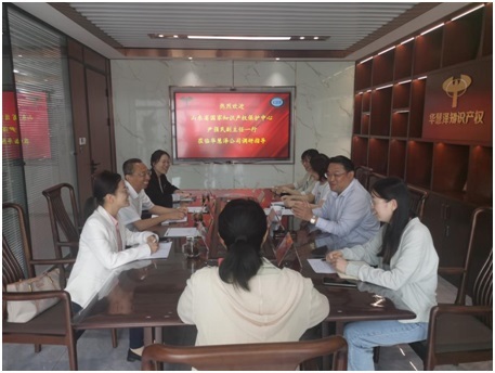 5月25日,山东省国家知识产权保护中心副主任尹强民、预审一部部长牟若楠、副部长刘小帆一行莅临华慧泽公司调研交流。公司董事长张万伟、专利部负责人参加座谈。此次调研,旨在推进创新主体高效利用山东省国家知识产权?;ぶ行淖ɡど笸ǖ?,快速开展高质量知识产权创造。