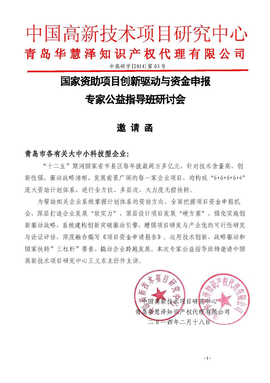 二、活动名称:关于举办国家资助项目创新驱动与资金申报研讨会