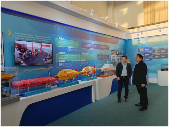 会后,华慧泽公司一行在国家深?;毓芾碇行南钅恐鞴苋斡窀盏呐阃步庀?,参观了中心的“深海之路——成就馆”、“蛟龙号”,对深海探测技术、科研装备研发以及海洋资源利用等方面进行了细致的了解。