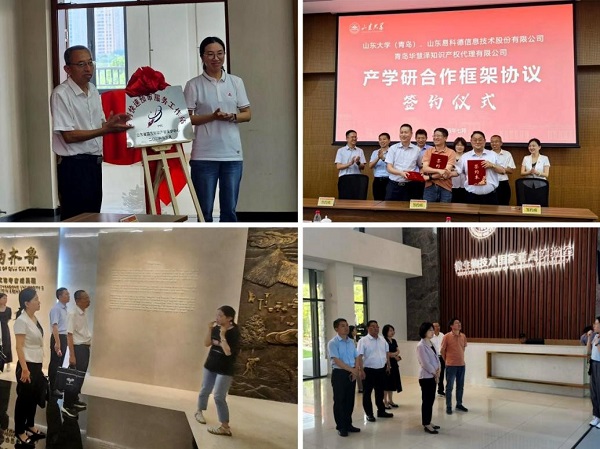 随后,举行了专利快速预审服务工作站揭牌仪式、产学研合作框架协议签约仪式等活动。青岛市市场监督管理局知识产权促进处处长栾华、山东省国家知识产权?;ぶ行脑ど笠徊坎砍つ踩糸?、青岛华慧泽专利代理事务所合伙人贺敬虹、国家知识产权局战略规划司苏强围绕国家及山东省、青岛市知识产权相关政策、高价值专利培育进行了宣讲,山东大学计算机科学与技术学院宣东教授团队陈竹军推介了人机智能系统研究专利成果。