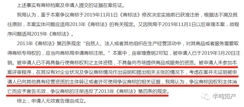 实务中,看到引证商标权利人已注销,一般在复审的时候会选择对引证商标提撤三,这样引证商标由于没有提供商标使用证据被撤销,复审成功,但最近学习案例的时候,发现除了这个方法外,还可以对引证商标提出无效宣告。