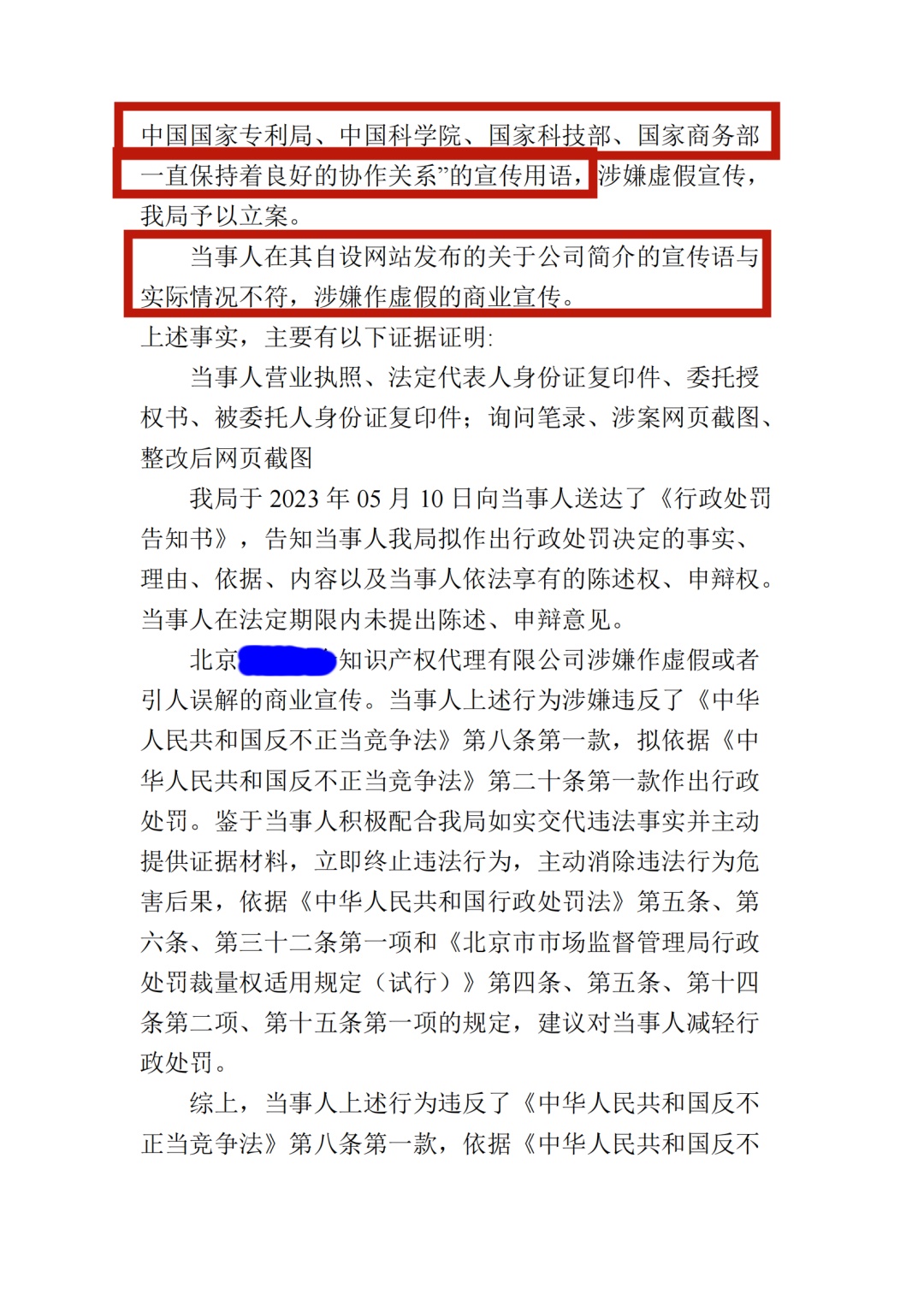 近日,北京市企业信用信息网发布了一则处罚信息,北京某知识产权代理机构在自设网站一栏中发布:“公司先后在北京、南京、香港等十几个城市设立了知识产权代理公司、专利事务所、知识产权管理咨询公司等10余家独立机构。且多次荣获知识产权局颁发的优秀知识产权服务机构称号,同时成为国际保护知识产权协会(AIPPI)、国际商标协会(INTA)、欧盟商标协会(ECTA)等多个国际组织会员,与世界200 多个国家和地区的专业机构建立了稳定良好的合作关系,与国家商标局、中国国家专利局、中国科学院、国家科技部、国家商务部一直保持着良好的协作关系”的公司简介和宣传用语与实际情况不符,涉嫌虚假宣传。