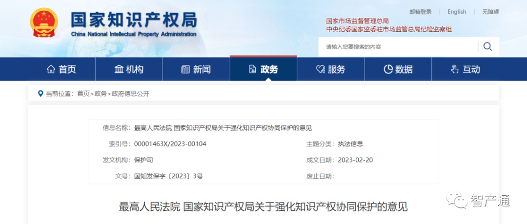 最高法 国知局:关于强化知识产权协同保护的意见