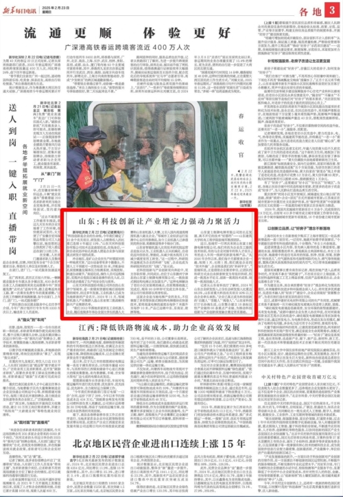 新华社刊登《山东:科技创新让产业增定力、强动力、聚活力》