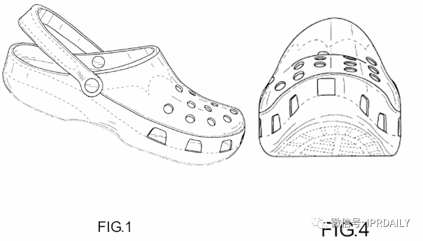 2006年至2008年,美国外观专利侵权判定依然采用1984年确立的“新颖点测试法标准(Novelty Point Test)”,该标准主张无论两个设计看起来多么相似,被诉产品必须擅自使用了授权外观设计区别于现有外观设计的新颖点[1]。在Crocs案的审理过程中,ITC认为:当789号外观专利被视为一个整体时,该授权外观设计产生的视觉印象包括: